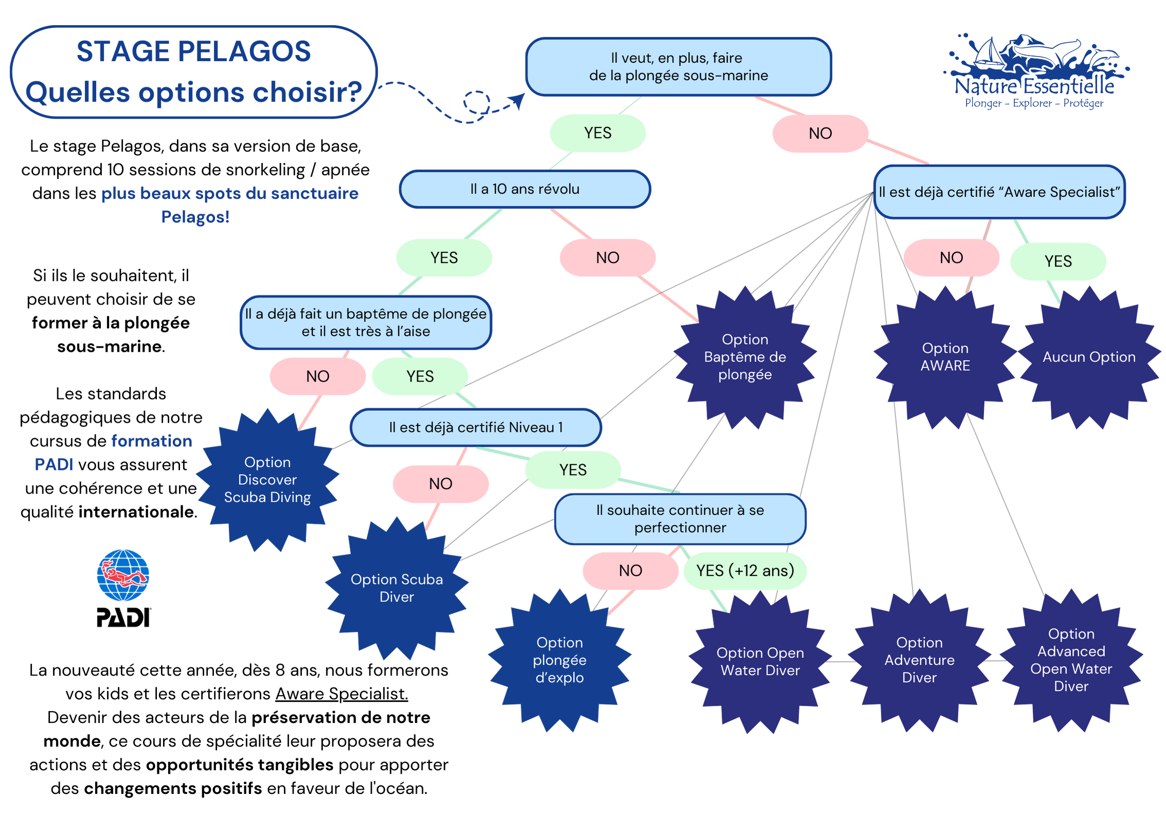 Nature Essentielle est Padi dive Resort! Offrez à vos enfants nos certifications de plongée Junior, valables dans toutes les mers du monde!